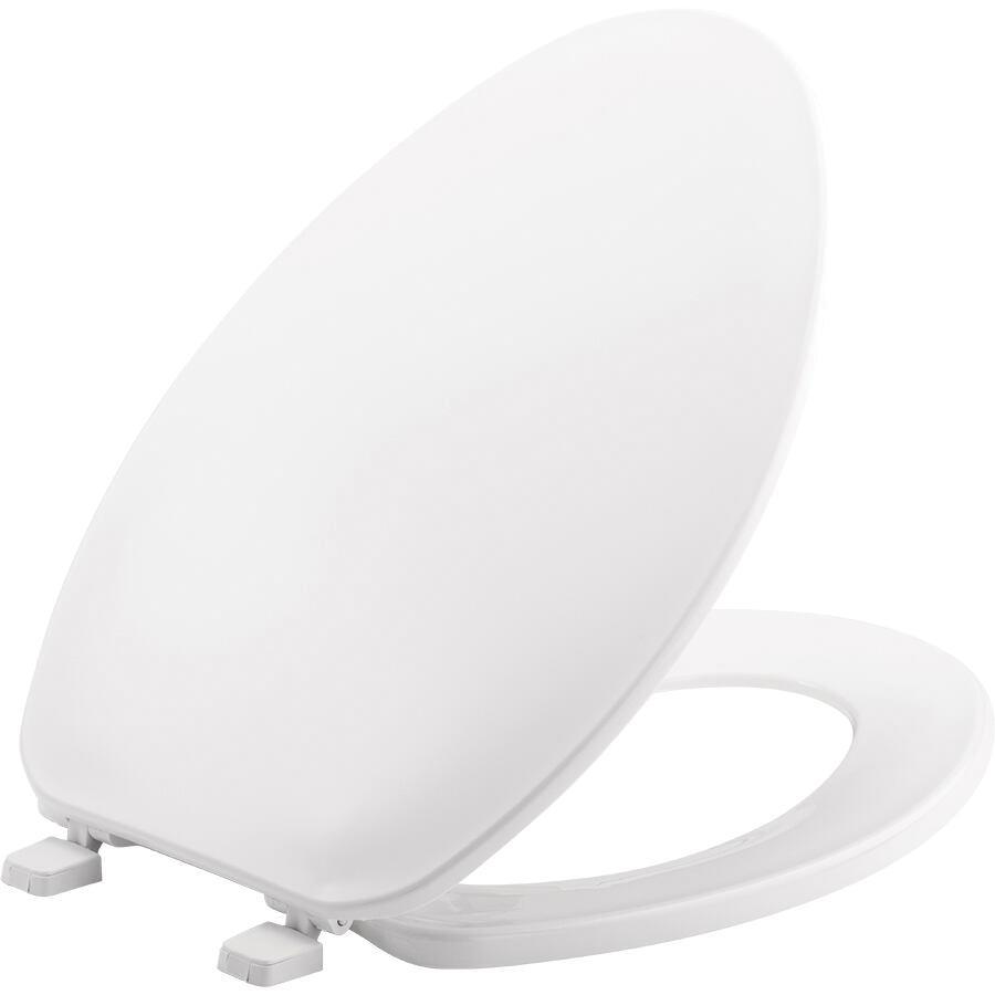 Bemis® Closed Front Toilet Seat With Cover, Elongated Shape, Plastic, White, Yes With Cover, Residential, 18.625 in H x 14.125 in W x 1.563 in D, Domestic/Import: Domestic