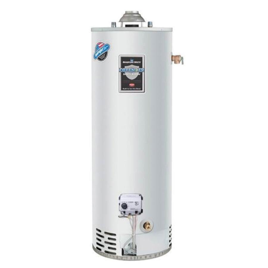 Bradford White® Gas Water Heater, 30 gal Capacity, 27000 Btu/hr, 7.9 kW, 46 gal First Hour Delivery, 3 in, 4 in Vent, Atmospheric Vent, NPT Connection, Floor Mounting, Natural Gas Fuel, Contains Lead, 16 in Dia, Domestic/Import: Domestic
